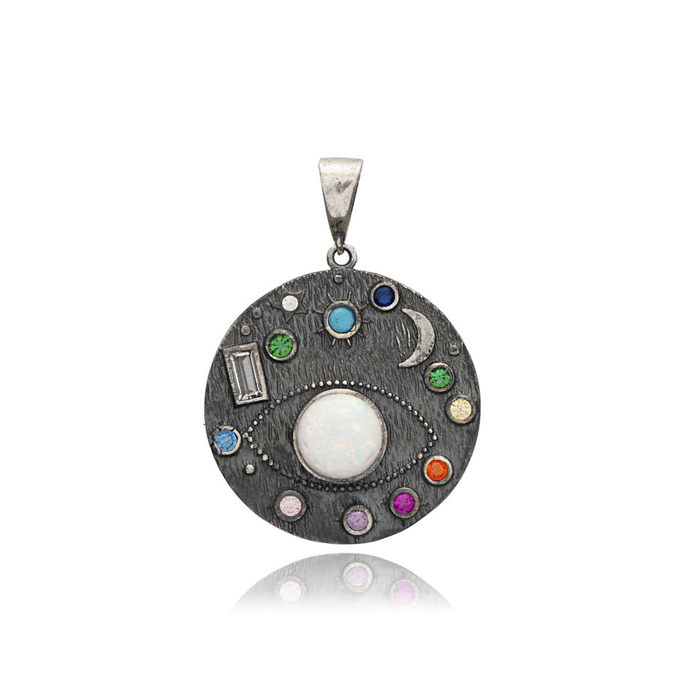 Galaxy Stars Médaillon en pierre colorée Charm oxydé Fabriqué à la main en gros Bijoux en argent 925