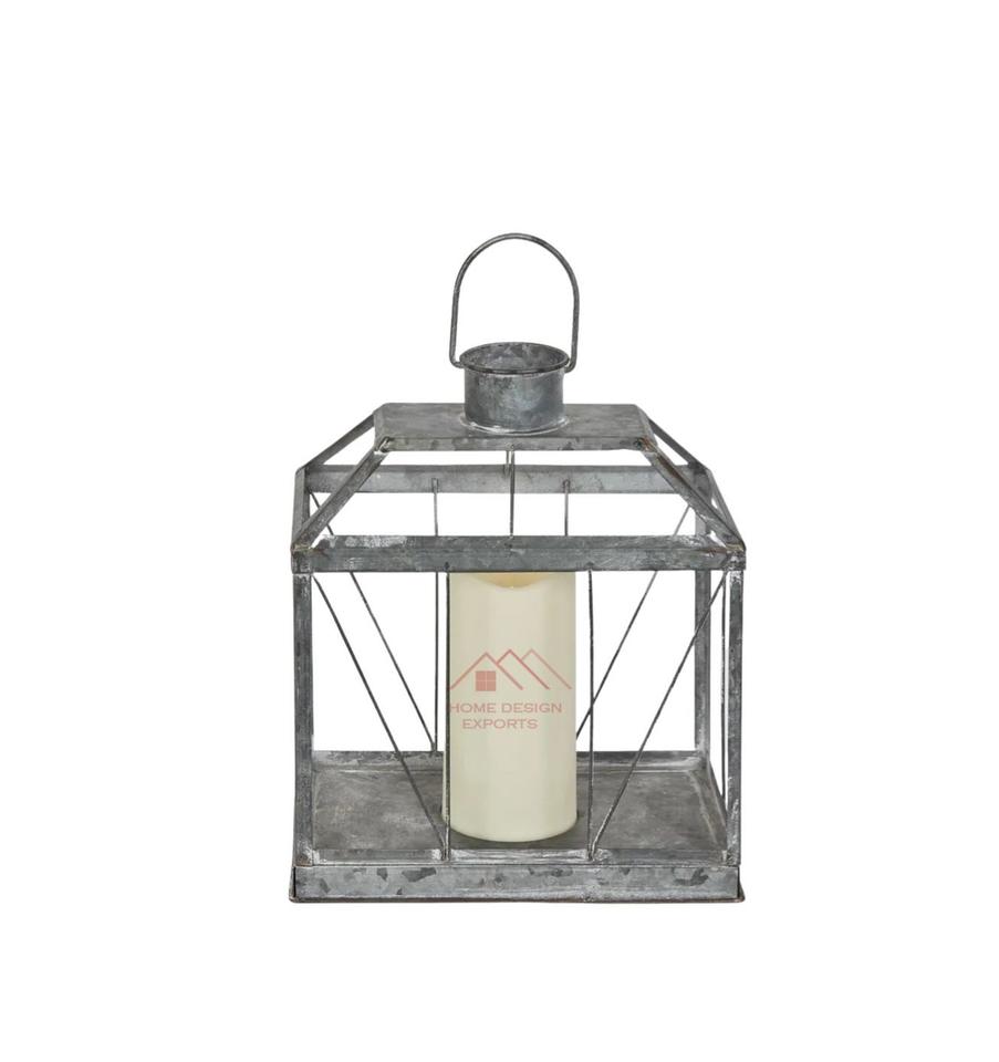 Lanterne à bougie en métal galvanisé, faite à la main