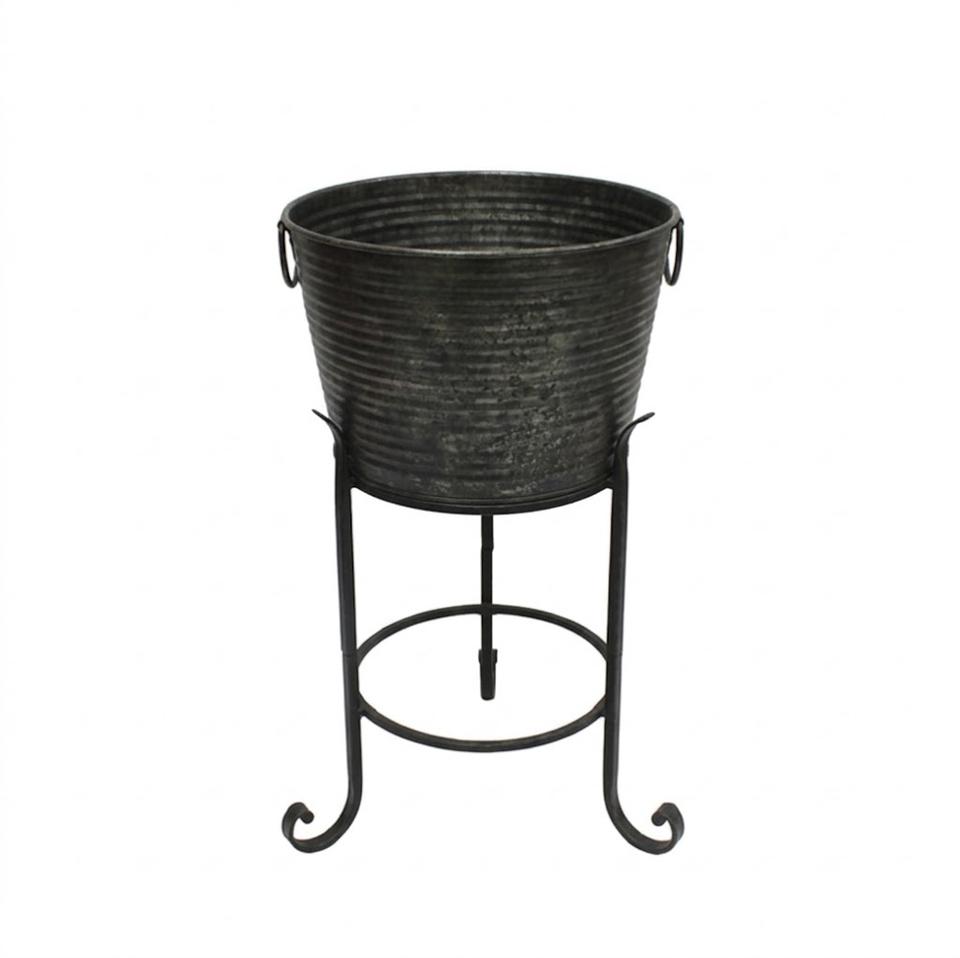 Galvanized Beverage Tub With Stand Metal Wine Cooler Ice Bucket Antique Black Finish Rustic Iron Tub Large Capacity Drink Cooler
