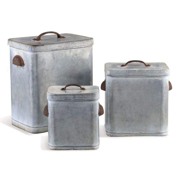 Ensemble de bidons galvanisés avec une esthétique chaleureuse de ferme et une haute fonctionnalité conçue pour s'adapter à tous les aménagements de cuisine