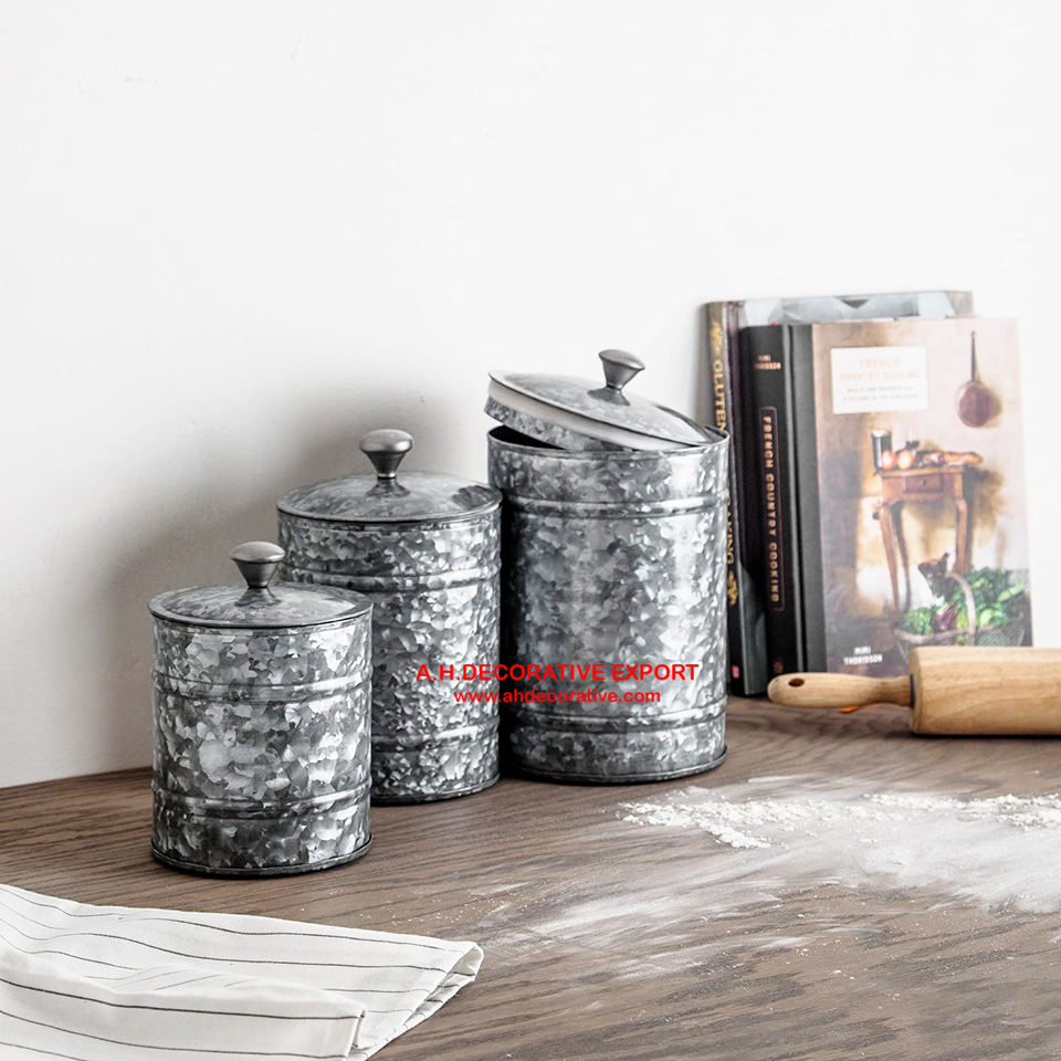 Ensembles de bidons en métal galvanisé de haute qualité, ensemble de 3 bidons en métal à vendre au prix de gros pour la décoration
