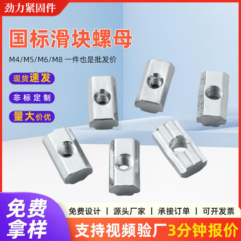 Galvanized Carbon Steel Sliding Block Nuts M4 M5 M6 M8 Series Bolts with National Standards 20 30 40 45