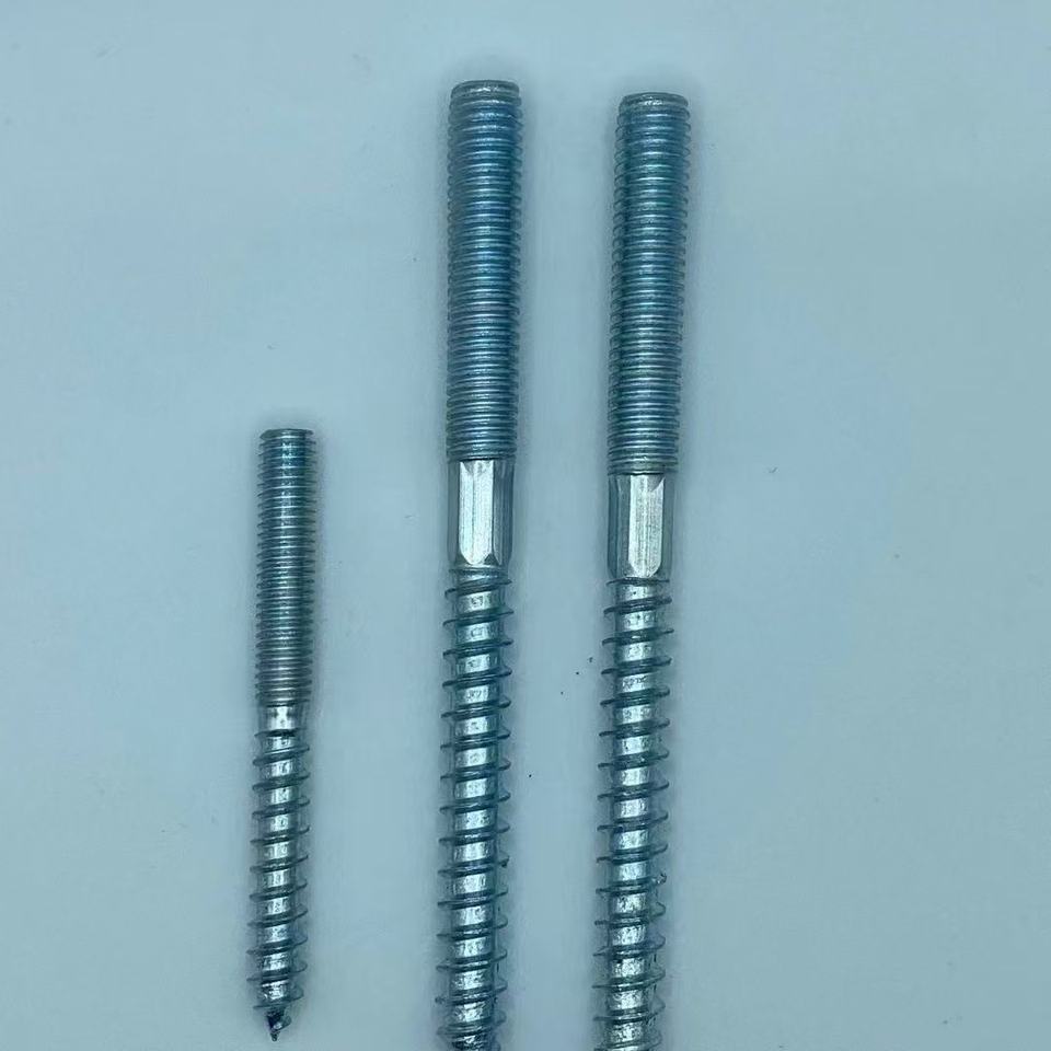 Support en bois galvanisé à double extrémité avec goujon en métal Boulon de fixation de meubles Produit d'ancrage autotaraudeur pour vis à goujon en bois