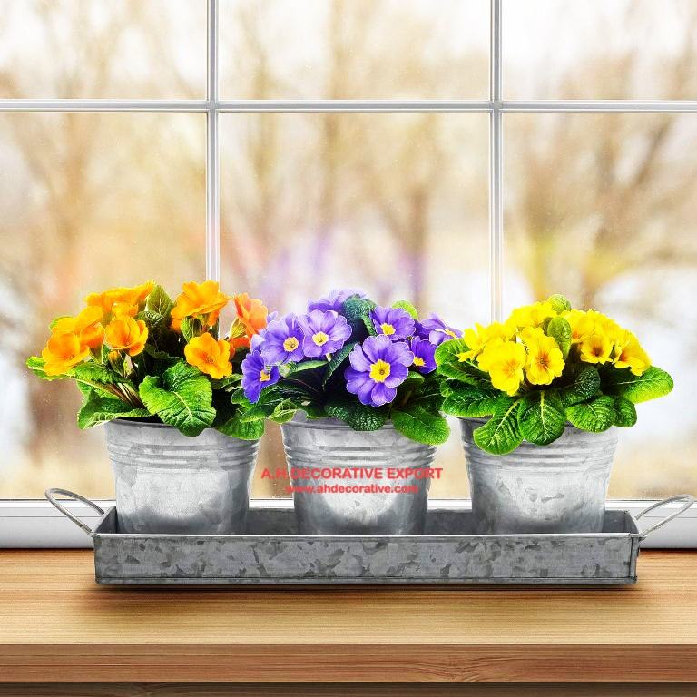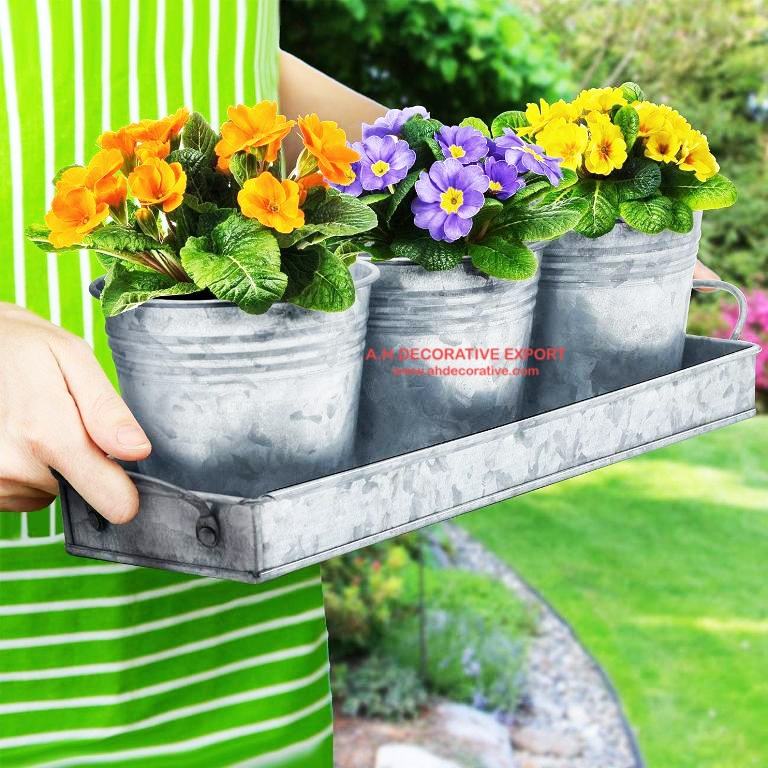 Galvanized Iron Zinc Planter with Tray Balcony decorative Planters Pots Garden decoration Use Planters Tray