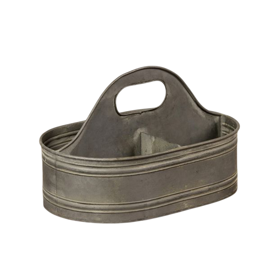 Porte-ustensiles de cuisine en métal galvanisé à 3 compartiments avec poignées, organiseur de couverts avec base en bois pour table