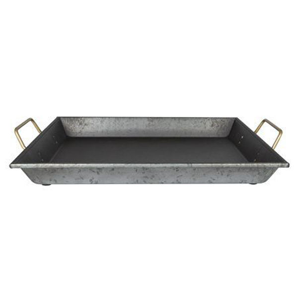 Plateau de service de vaisselle de forme ovale de la plus grande qualité avec poignées latérales Plateau de service de nourriture en métal galvanisé de couleur grise
