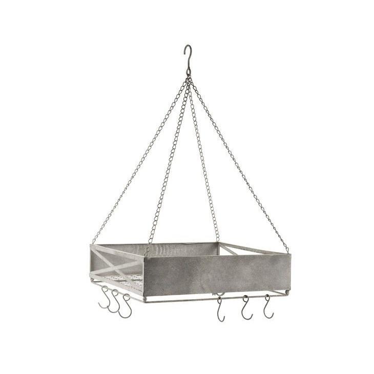 Jardinière suspendue en métal galvanisé avec chaîne, support mural rectangulaire pour plantes d'intérieur et d'extérieur, finition argentée, pot de jardin pour la décoration de la maison