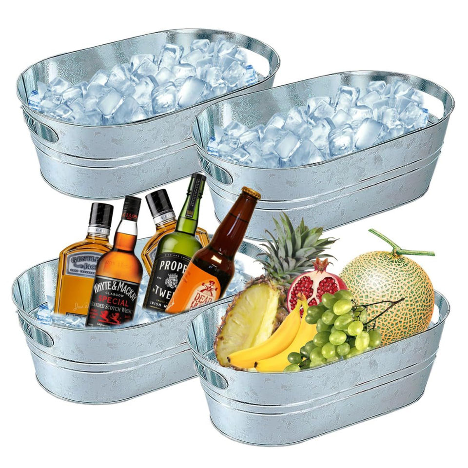 Seau à glace en métal galvanisé pour boissons, idéal pour les fêtes, grands seaux à vin pour fêtes en plein air, refroidisseur de boissons avec poignées, seau à glace en métal