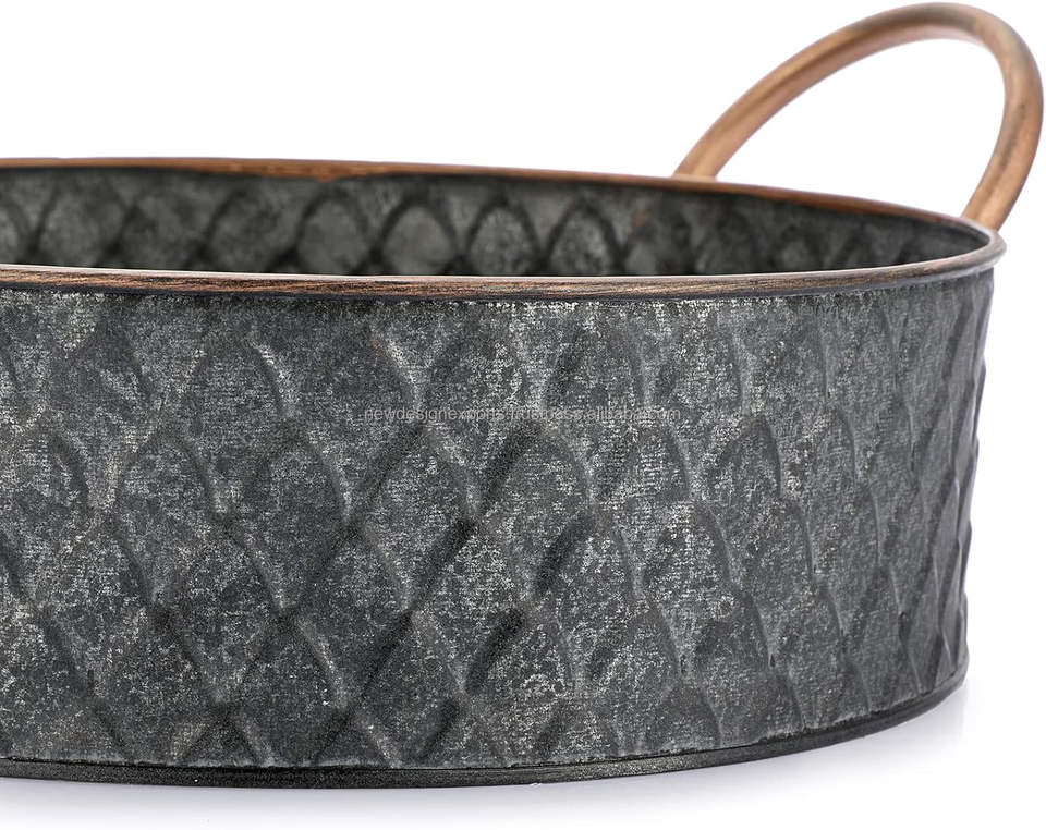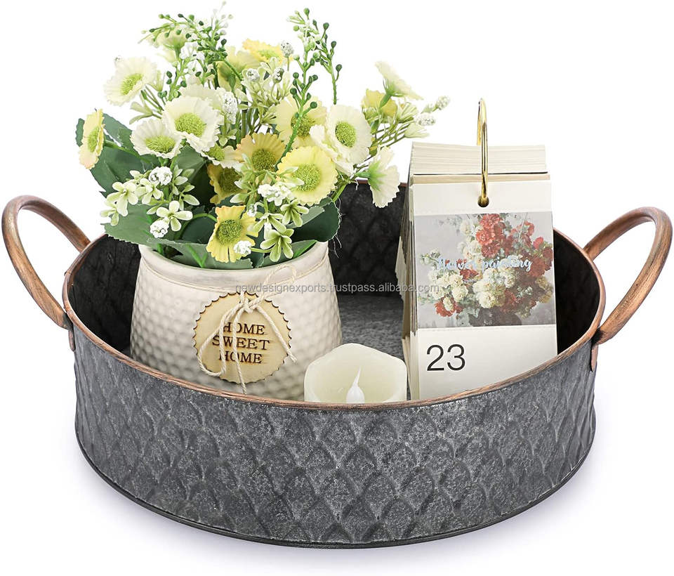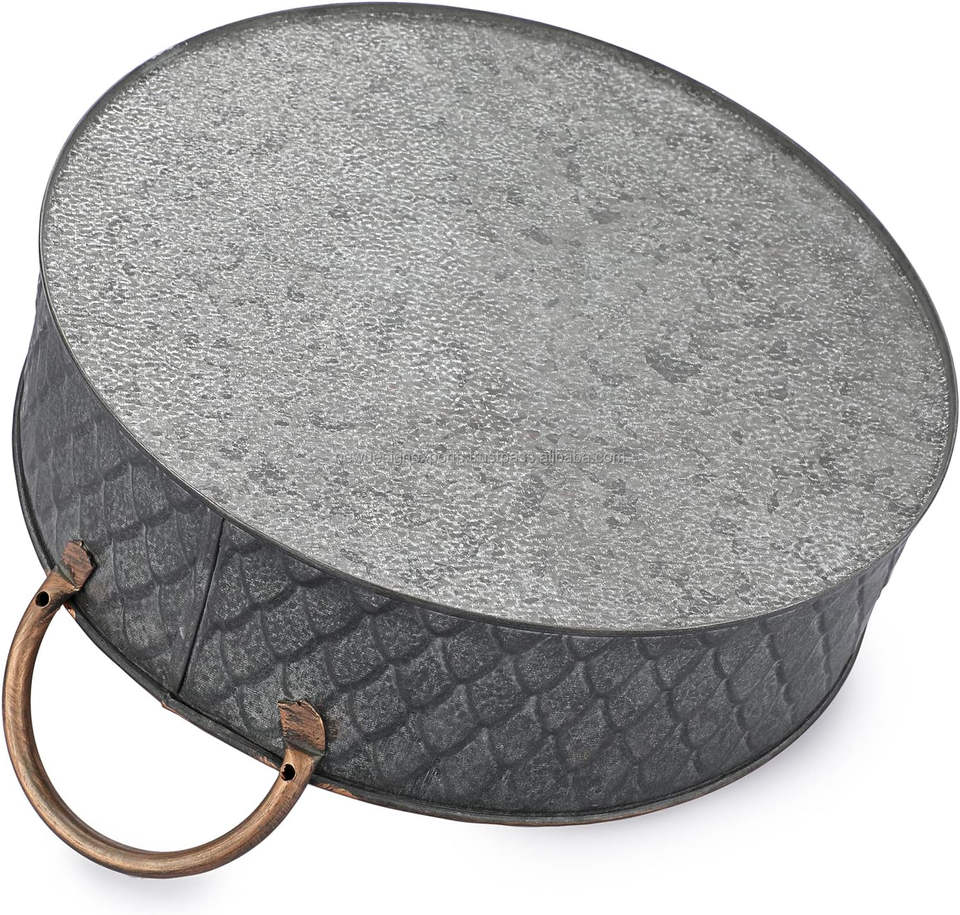 Plateau en fer galvanisé avec poignées Plateau de service de style industriel Plateau rond décoratif pour table basse pour la maison, la fête et le mariage
