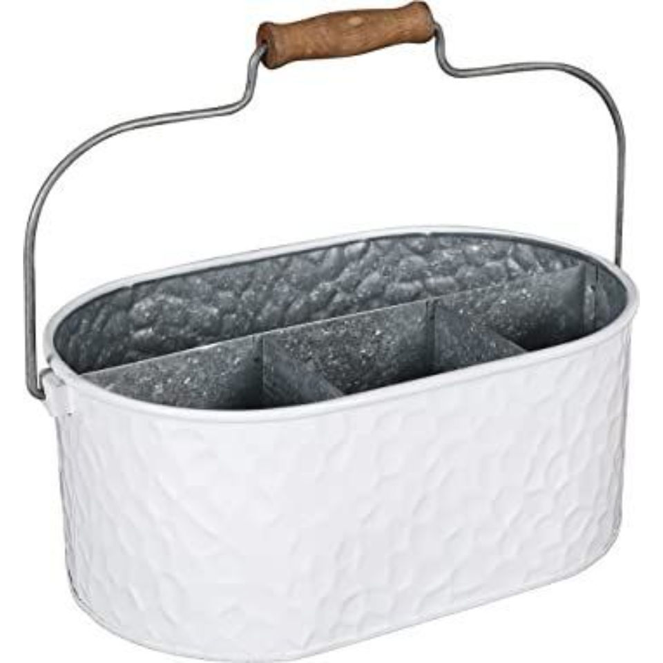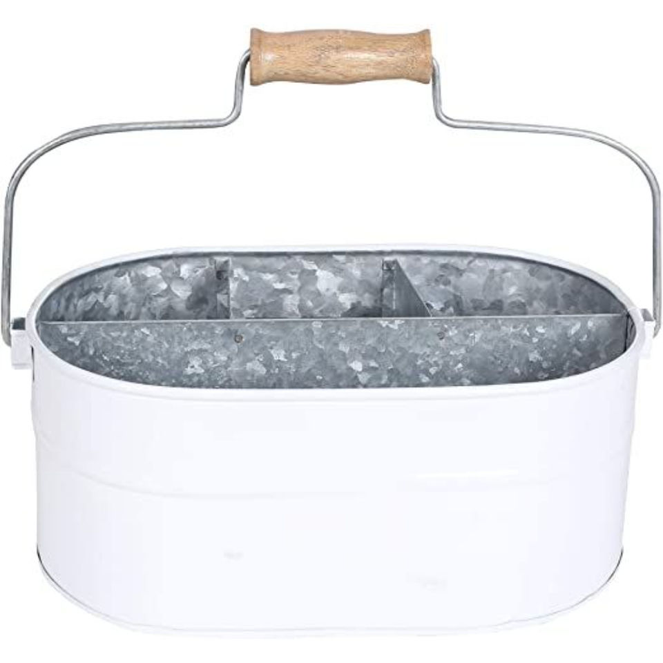 Porte-ustensiles de cuisine en métal galvanisé, rond, en fer, 4 compartiments, organiseur de rangement pour couverts, avec poignée