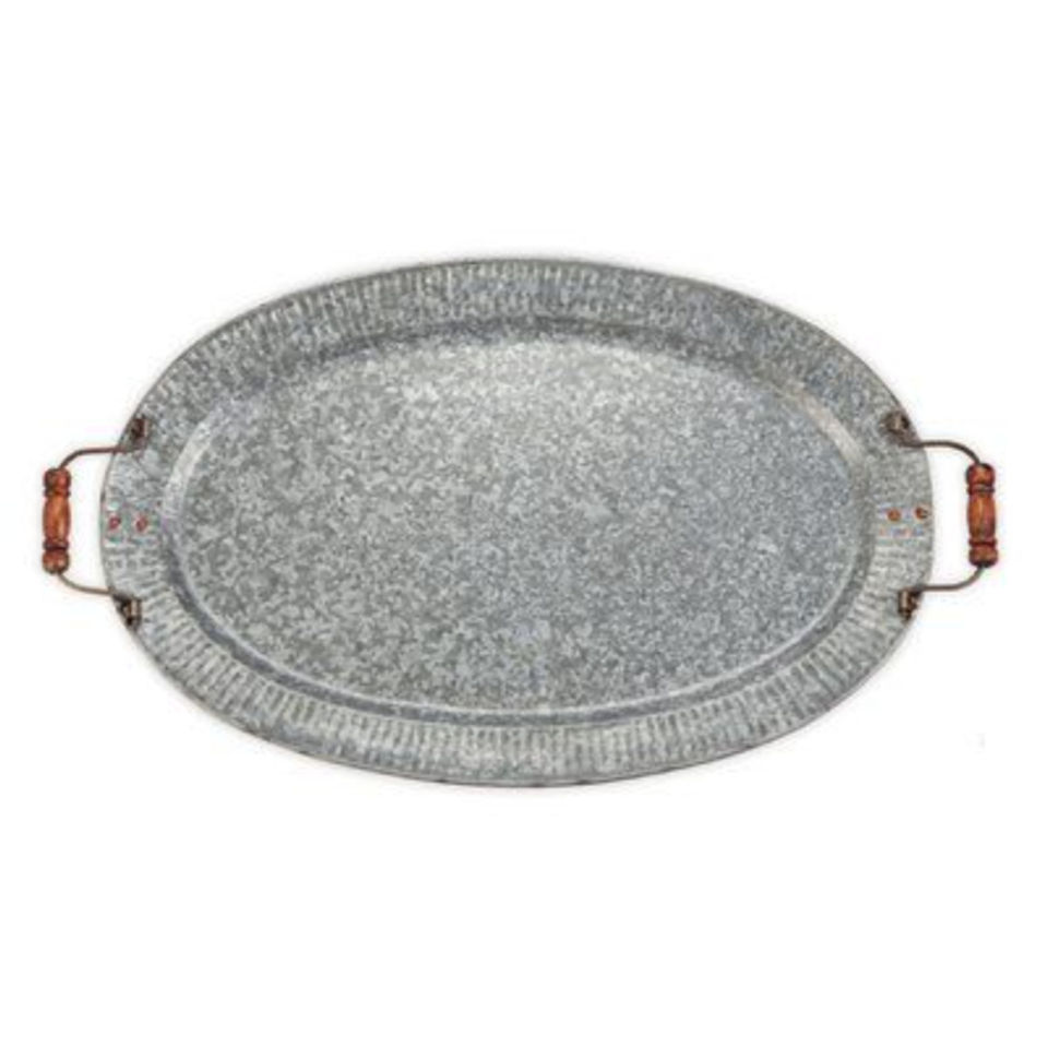 Ensemble de plateaux ovales en métal galvanisé avec poignées en corde, décoratifs, style vintage, pour la décoration de la maison et l'utilisation en cuisine