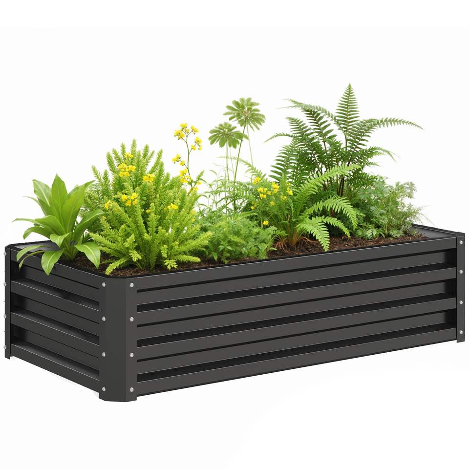 Jardinière en métal galvanisé 4 x 2 x 1, potager surélevé pour la culture de légumes, fleurs, herbes et succulentes, gris