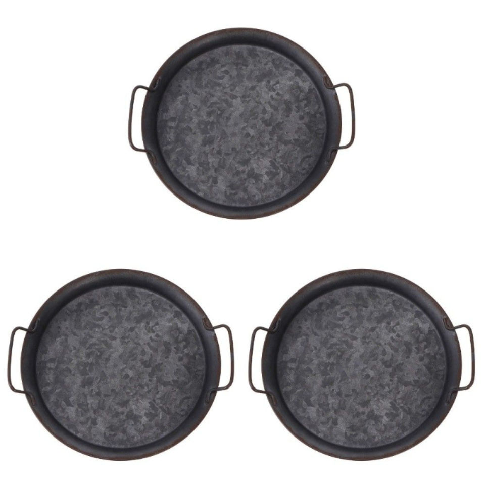 Plateau de service rond en métal galvanisé avec poignées en corde de jute, plateau décoratif pour la maison, la cuisine, les fêtes et les événements, en promotion
