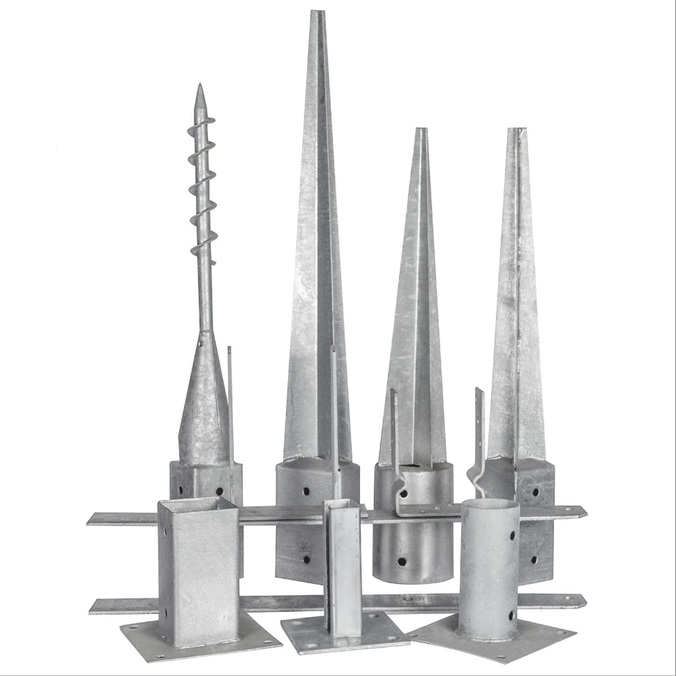 Piquets de sol en acier galvanisé pour clôture extérieure, ancrages de poteaux