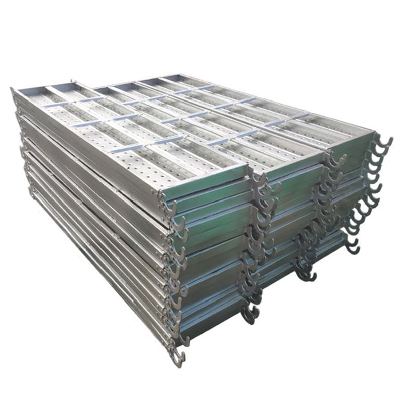Plateforme de chantier galvanisée, passerelle en acier, planches de chantier avec crochet de style Layher pour échafaudage à anneaux