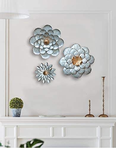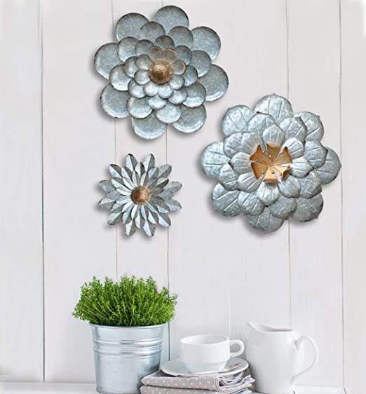 Art mural en métal au Design de fleurs transparentes galvanisées, peinture en métal faite à la main Unique, accessoires décoratifs pour la maison