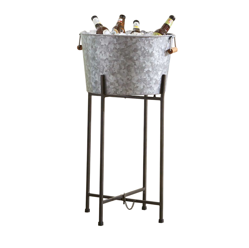 Bac à boissons en acier galvanisé avec support, grande capacité, ovale, en métal, pour intérieur, style rustique, seau à glace