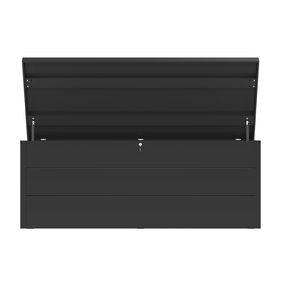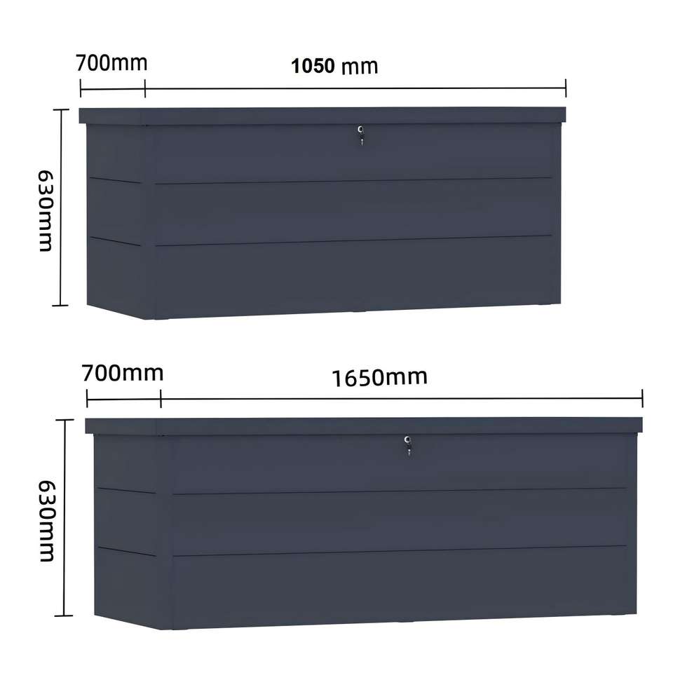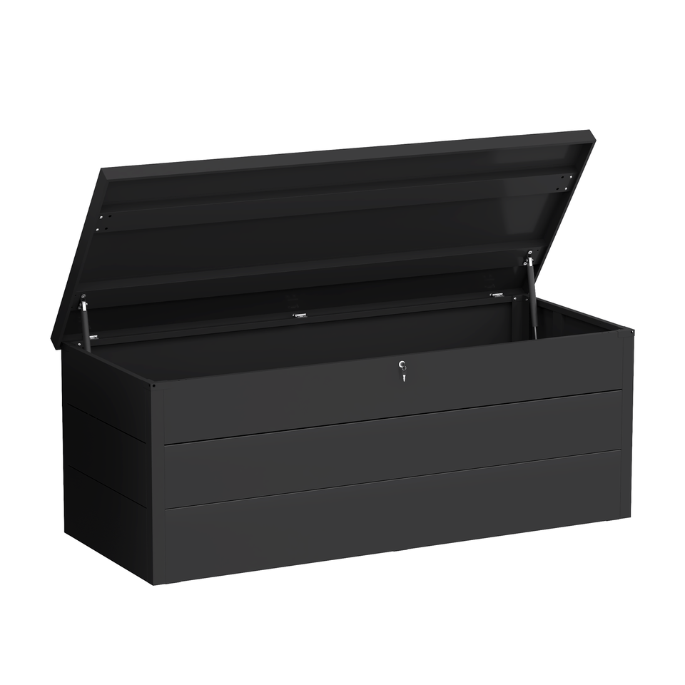 Boîte de rangement de jardin en acier galvanisé, coffre à outils de jardin personnalisé, noir, grande capacité, design industriel moderne, rangement extérieur pour patio