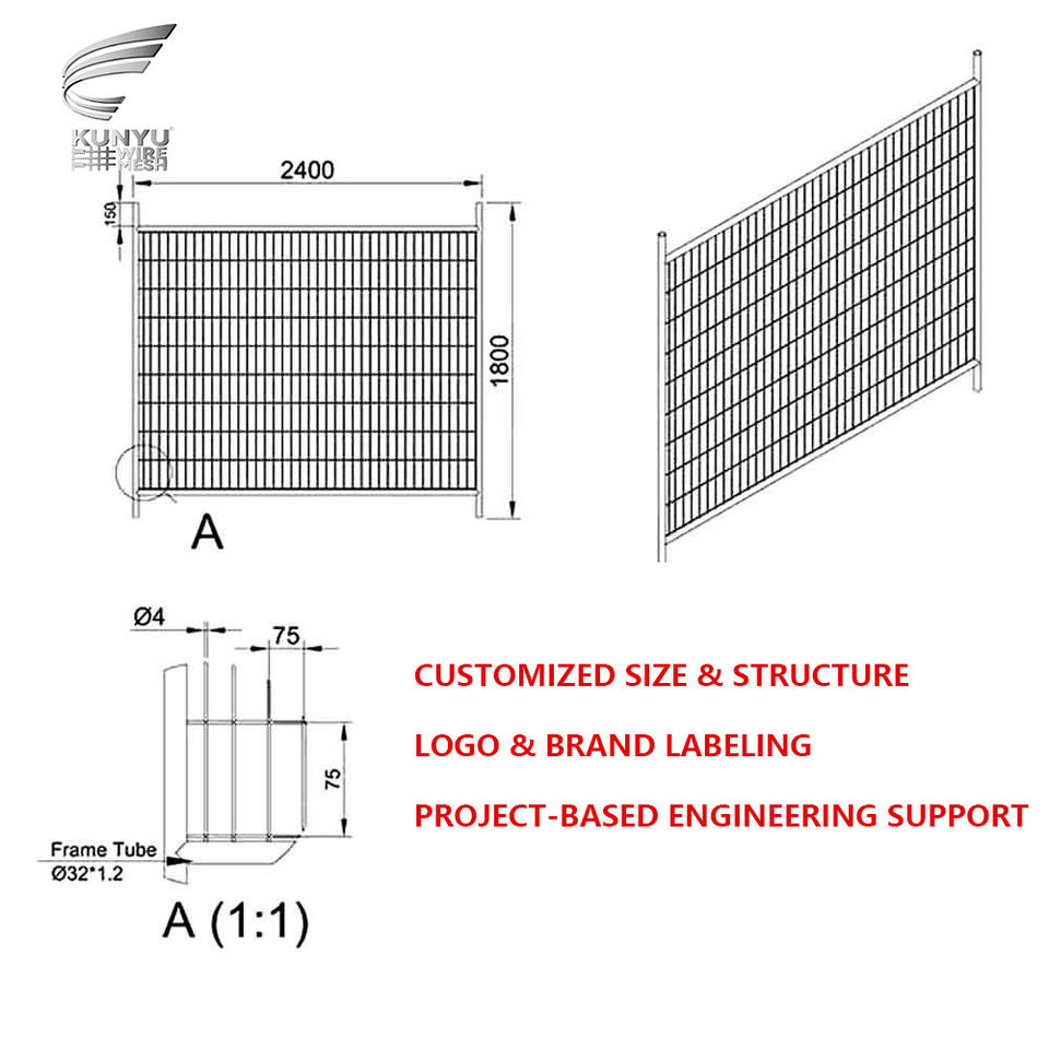 Panneaux de clôture temporaires galvanisés avec treillis soudé et base en HDPE