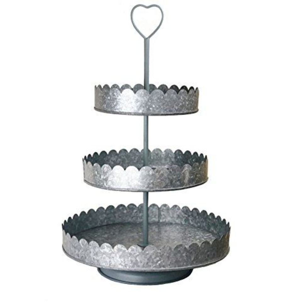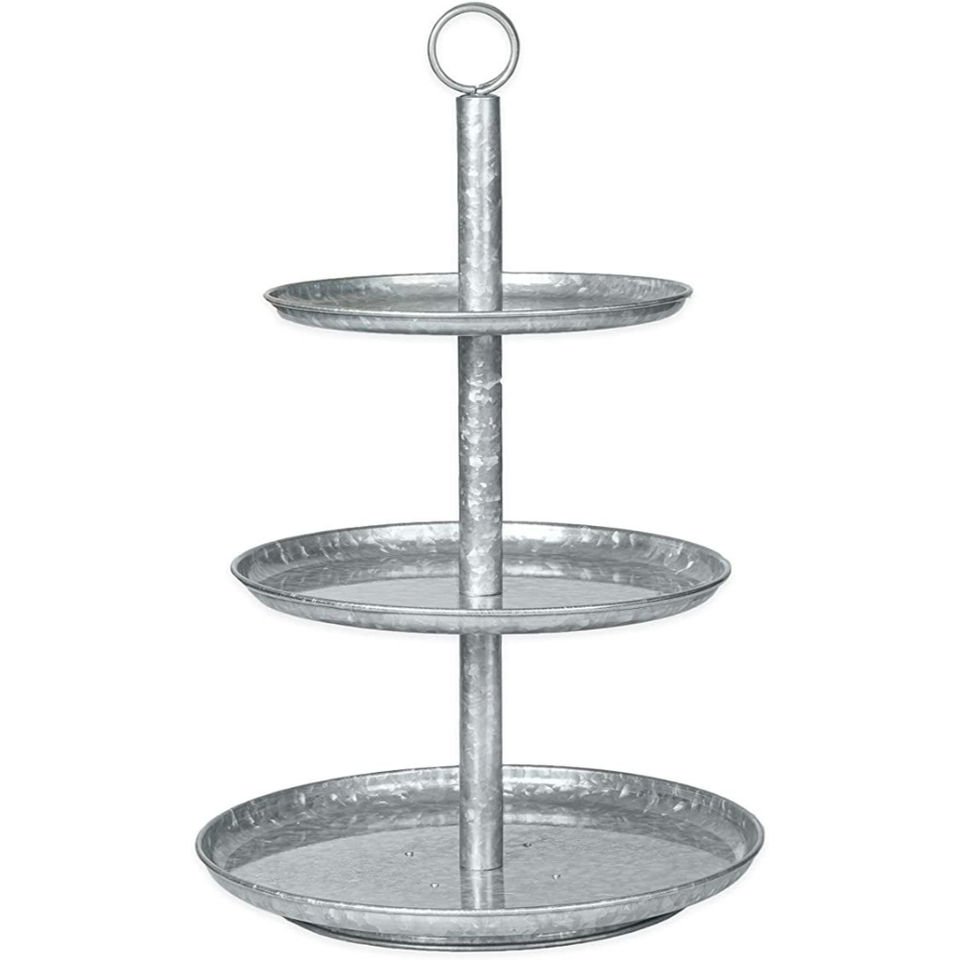 Support de service galvanisé à trois niveaux, plateau en métal à 3 étages pour gâteaux et desserts, idéal pour la décoration de cuisine rustique et les buffets de mariage