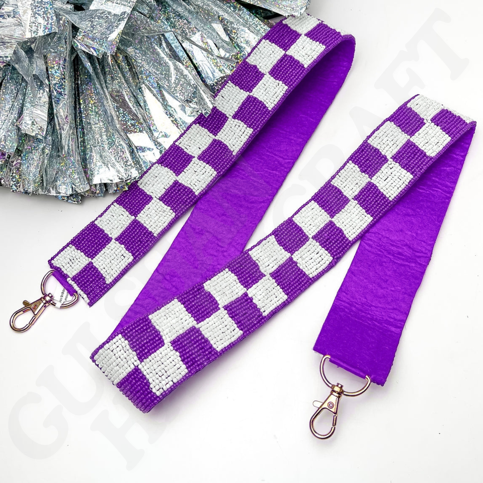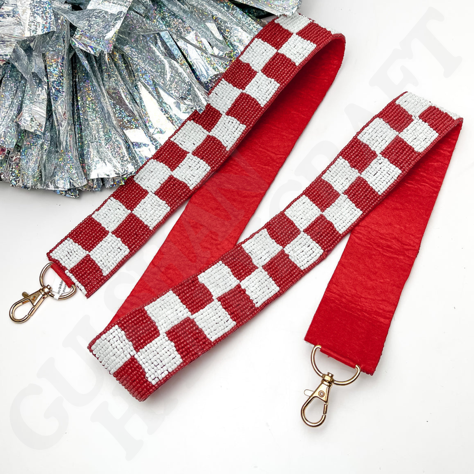 Adjustable Cotton Seed Bead Bag Strap Handmade Red Black Checkered Purse for Game Day Tailgates Stadium Events Everyday Use