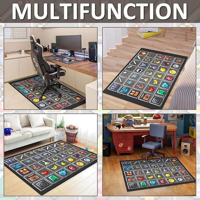 Tapis de jeu Teen Boys avec éléments de jeux Pixel Tapis de décoration, tapis de jeu médical pour chambre de garçon Salon Salle de jeux