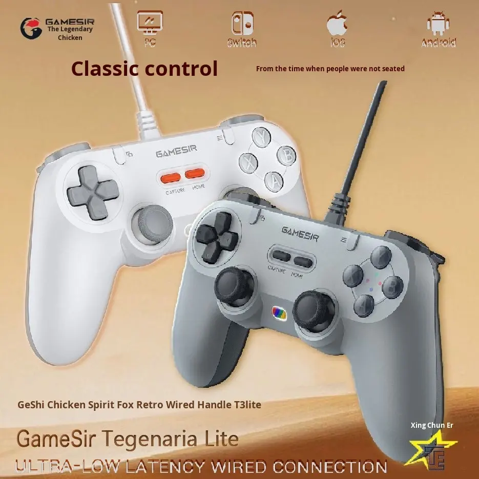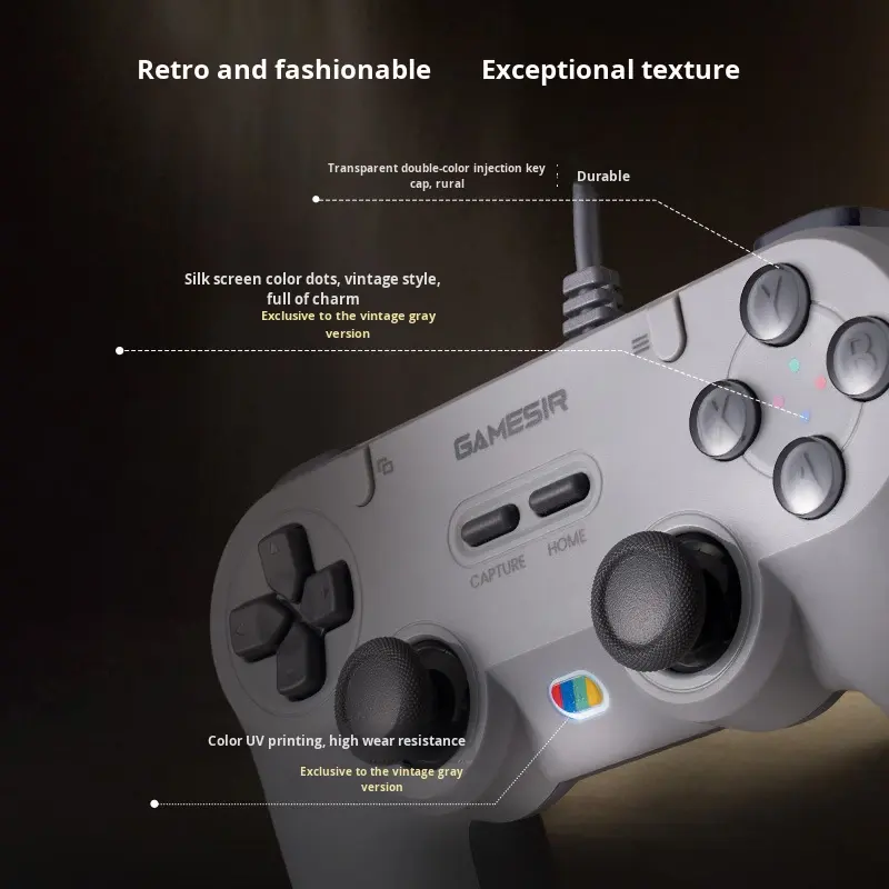 Manette de jeu filaire GameSir Tegenaria Lite pour Switch, Android, IOS, PC, Steam avec design rétro des années 90, sticks à effet Hall