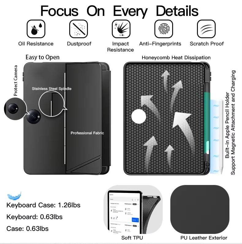 Couverture TPU et clavier ABS: La combinaison d'une couverture TPU et d'un clavier ABS offre à la fois flexibilité et durabilité, assurant que le boîtier est résistant aux chutes et aux rayures tout en offrant une expérience de frappe confortable.