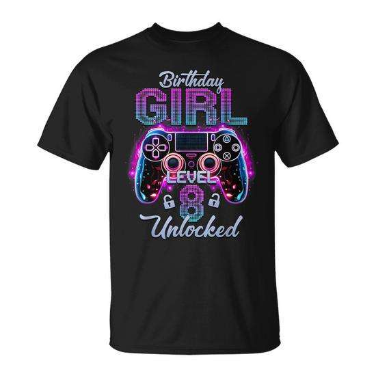 Gamer Girl Level 8 Unlocked T-Shirt Video Gaming Birthday Gift for 8th Birthday Girl