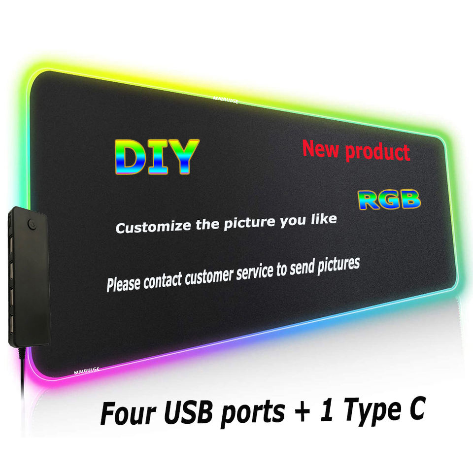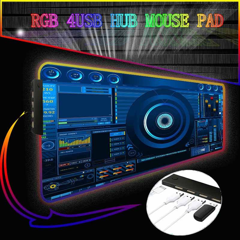 Tapis de souris RGB coloré, 4 ports USB, grand format, pour jeu vidéo, accessoire, avec éclairage RGB