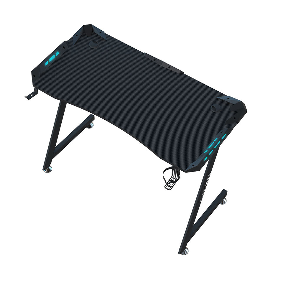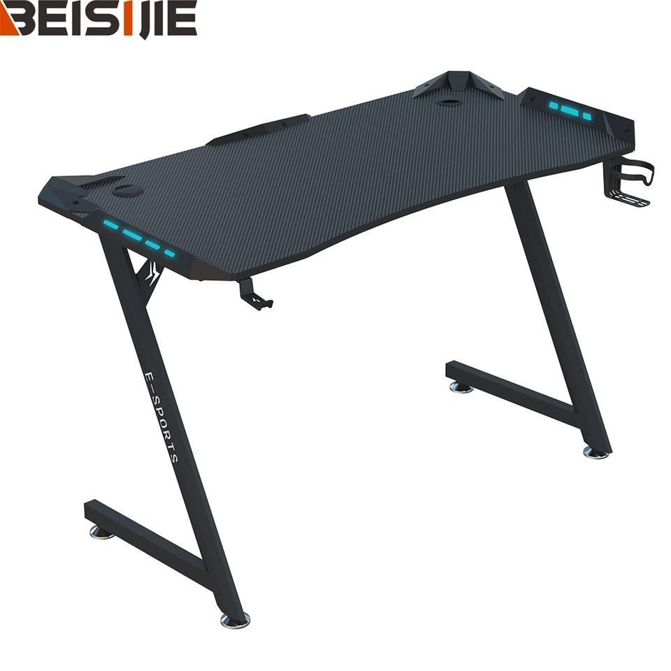 Porte-gobelet, Bureau rgb, Crochets pour écouteurs, Bureau de jeu, Motif en fibre de carbone, Ambiance de jeu, En forme de ZCaractéristique