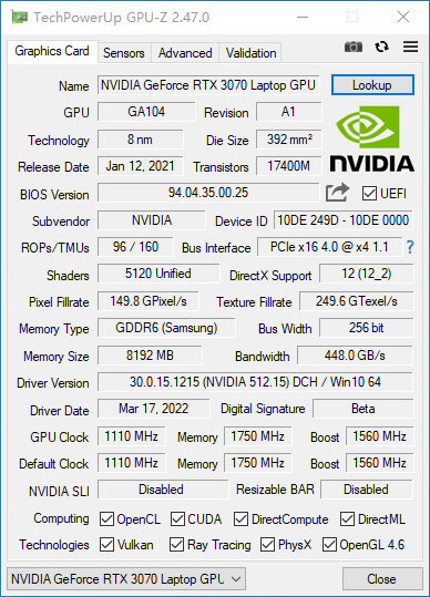 Model:RTX 3060M RTX 3070M RTX 3080M RTX 3090 RTX 4070 RTX 4090