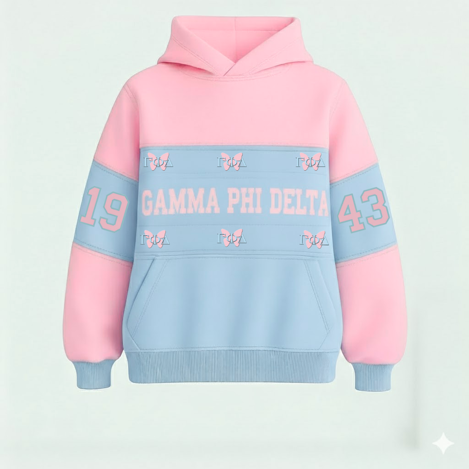 Gamma Phi Delta Sweat à capuche surdimensionné en coton et polyester brodé de haute qualité Vêtements grecs personnalisés