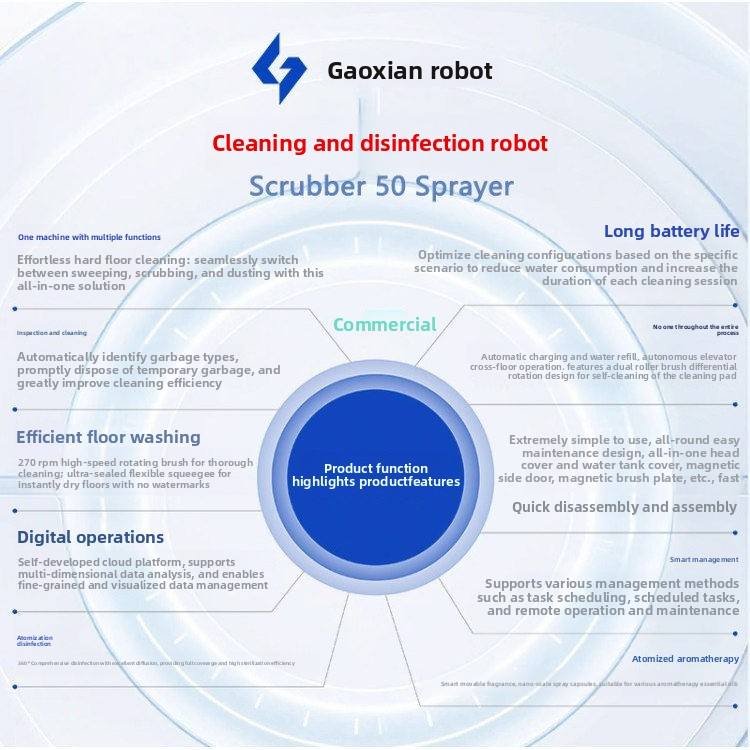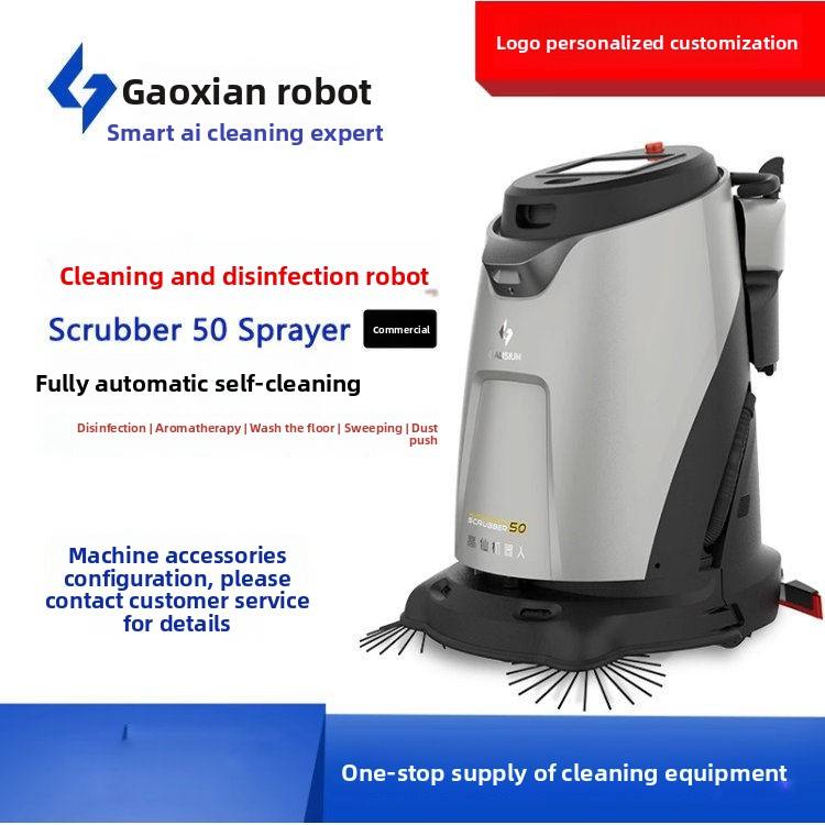 Robot de nettoyage commercial intelligent Gaoxian Scrubber50, entièrement automatique, 3-en-1 : balayage, lavage et aspiration, sans intervention humaine, avec intelligence artificielle