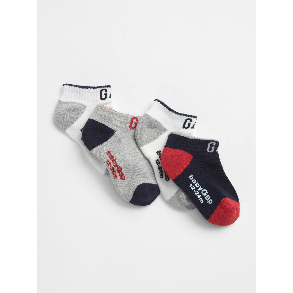 Gap Classic 3 Pair Ankle Baby Boys Socks Size Osfa, Color: White/Grey/Red
