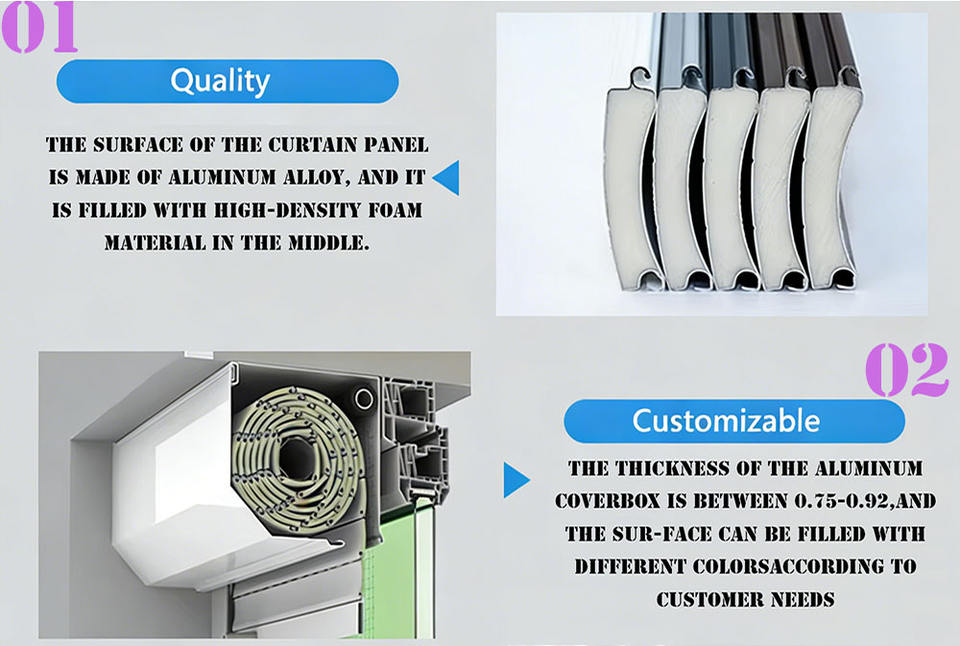 Type de moteur:Moteur tubulaire CC / Moteur CA (Manuel/Télécommande en option)