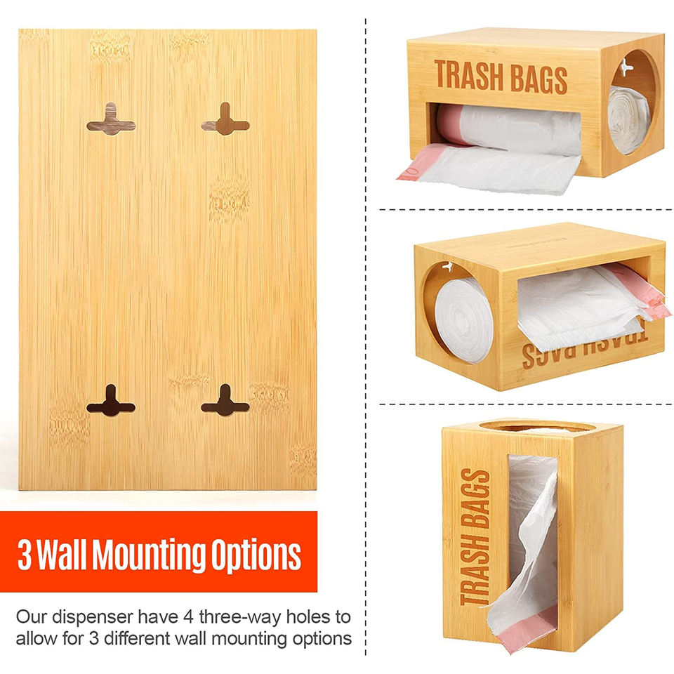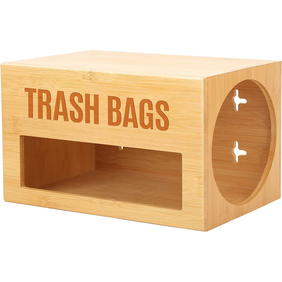 Porte-rouleau de distributeur de sac poubelle, organisateur de distributeur de sac poubelle sous l'évier, organisateur mural de sac poubelle de cuisine en bambou