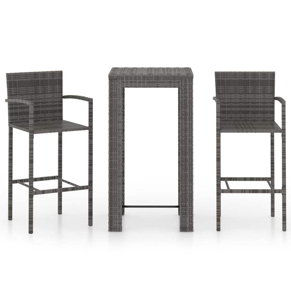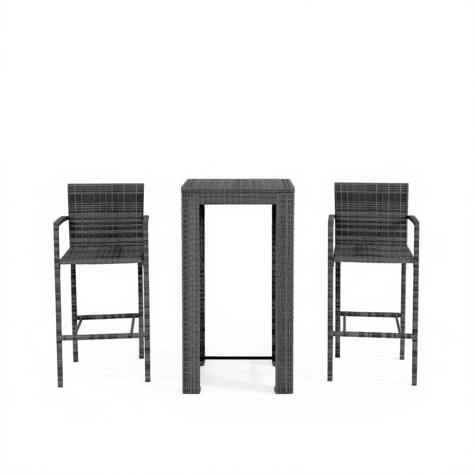 Ensemble de bar de jardin gris en rotin PE, design moderne, mobilier d'extérieur durable, outils de bar