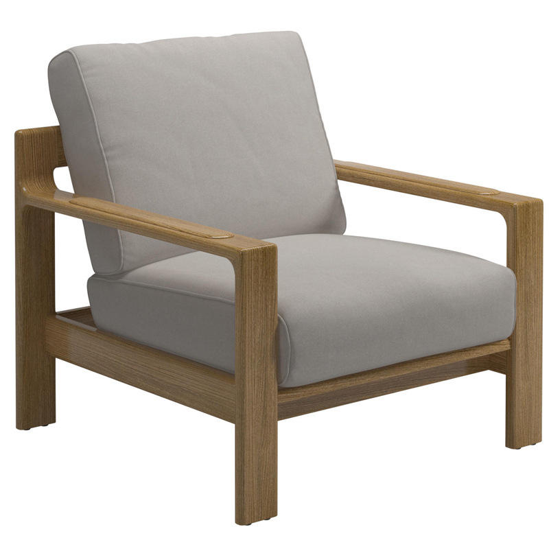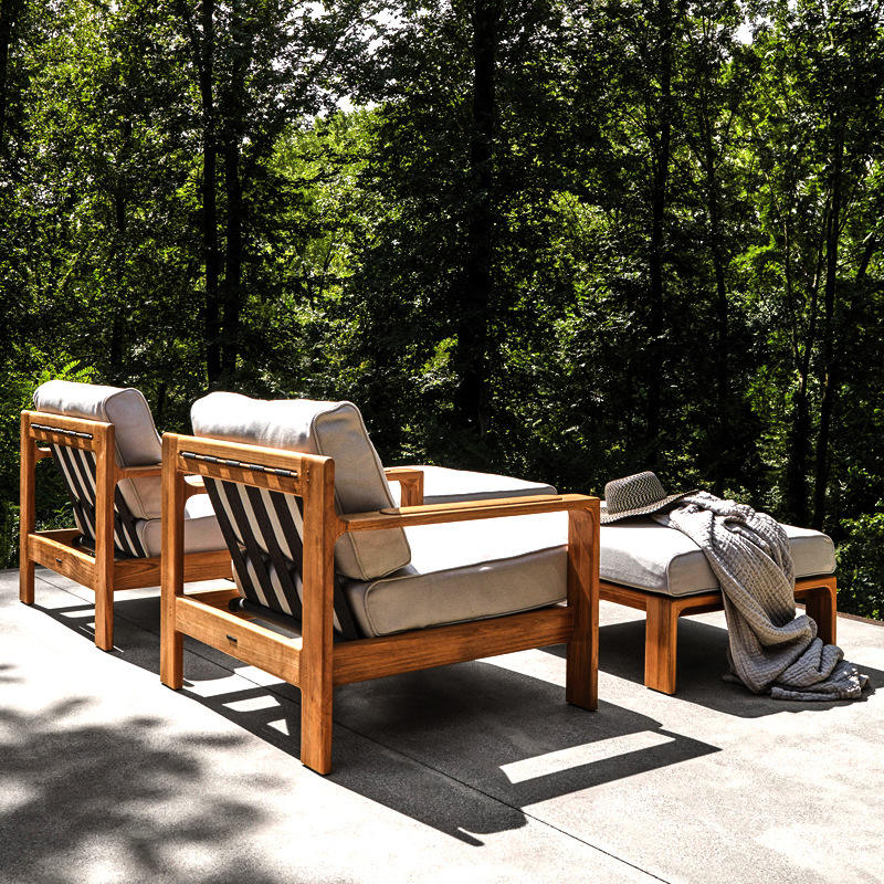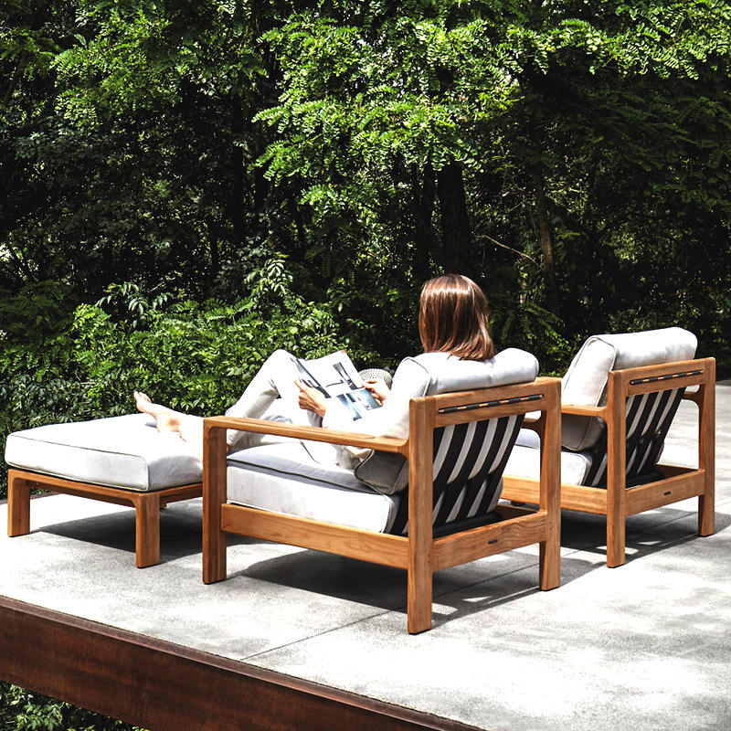 Chaise de jardin en bois massif, structure en teck, coussin en mousse, durable, utilisation en extérieur