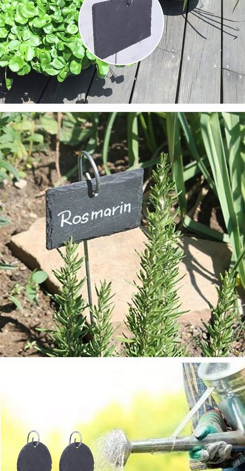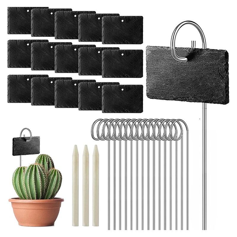 Étiquettes en ardoise de haute qualité pour décoration de jardin, 10 pièces en ardoise, 10 supports métalliques, 2 stylos, étiquettes de nom de plante, panneaux d'identification de plantes