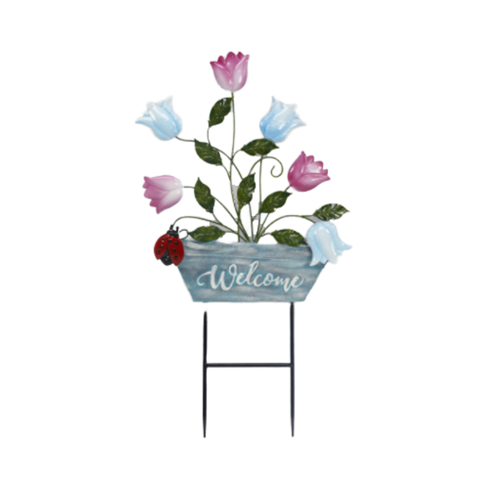 Décoration de jardin extérieur coccinelle libellule demi-rond colibri moulin à vent Sublimation fibre de verre piquet de jardin pour l'escalade