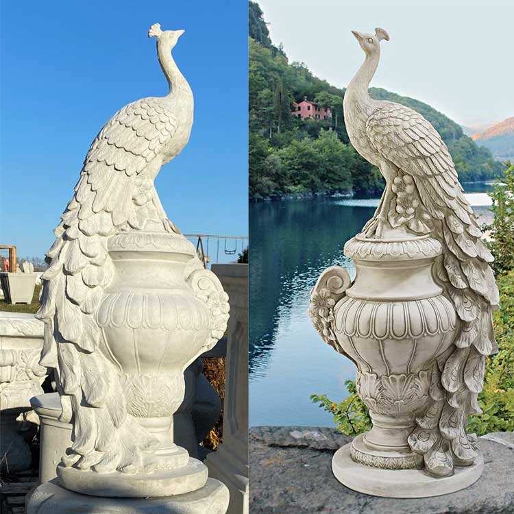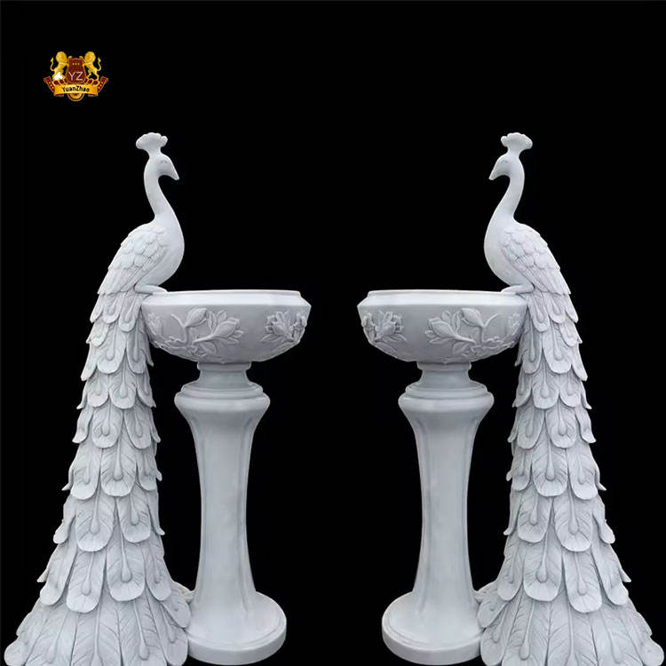 nom du produit:Statue de paon en pierre verte, bassin, statue d'animal en marbre blanc