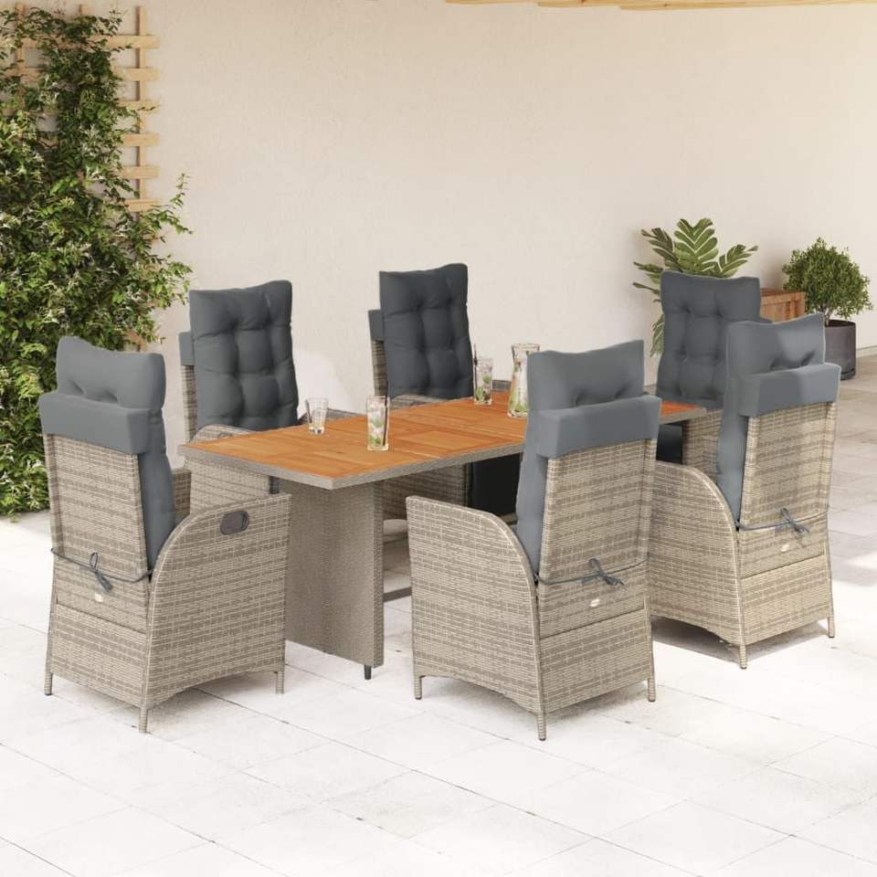 Ensemble de salle à manger de jardin 6 places, table en rotin et teck, mobilier d'extérieur résistant aux intempéries, design contemporain