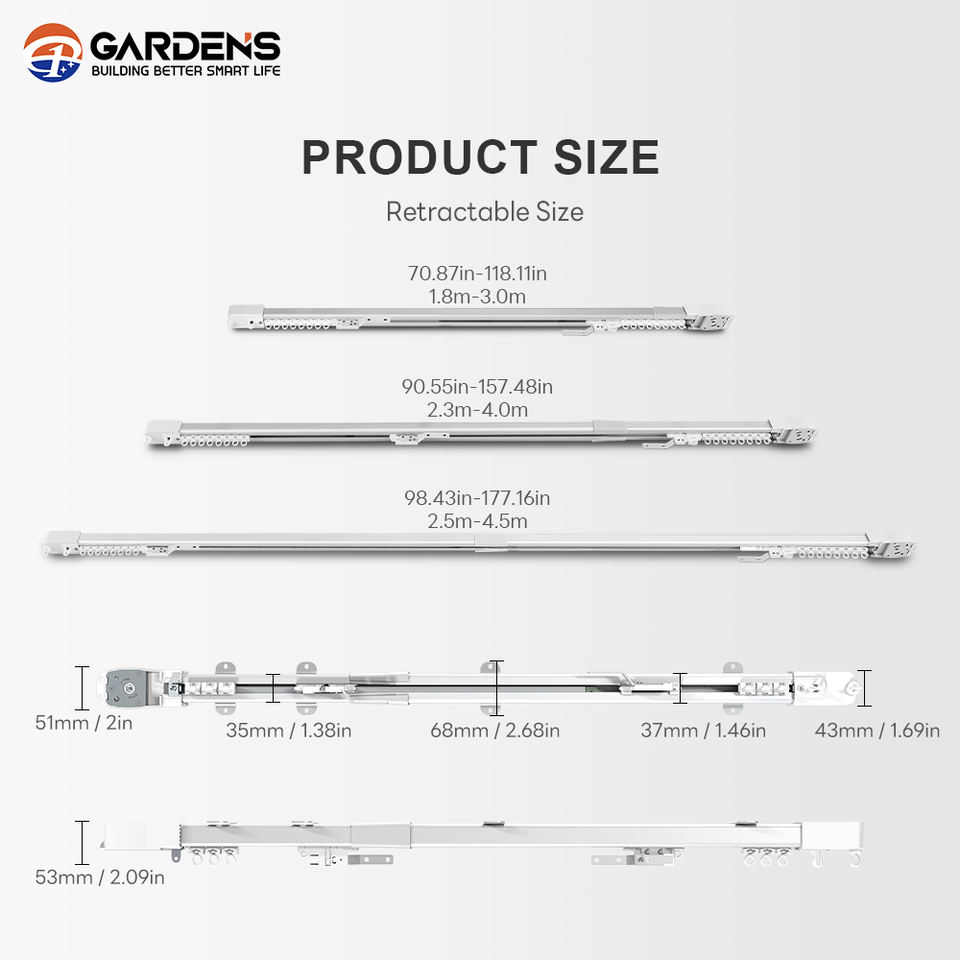 Nom du produit:Voie et moteur télescopiques futés de rideau 2.3-4.0m
