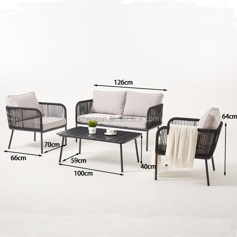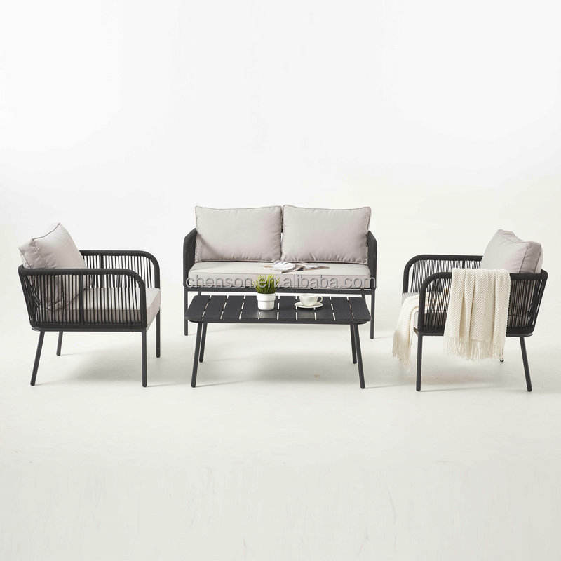 Meubles de jardin 4 pièces Canapé de balcon tissé en corde avec table basse