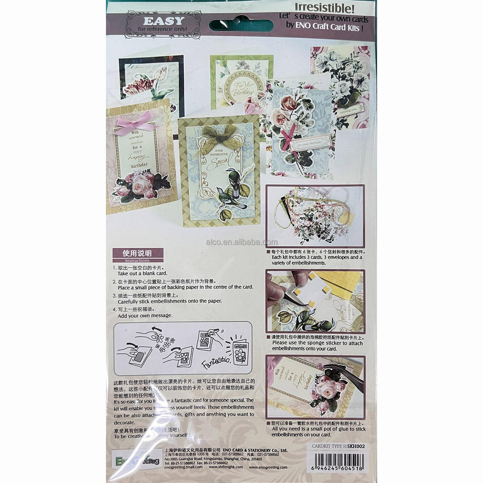 Handmade Card Kit PK6 (6 Cards + 6 Enveloepes + Embellishments)