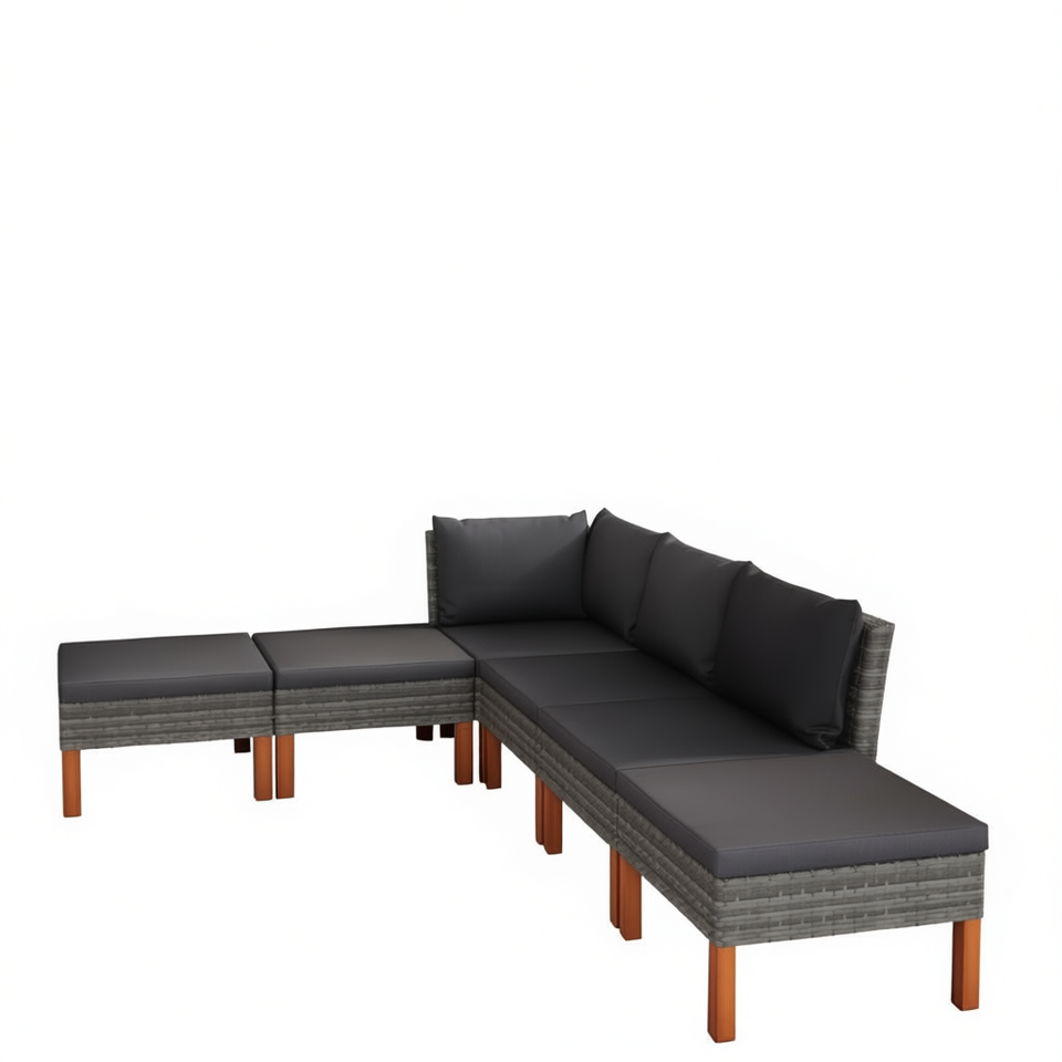 Ensemble de salon de jardin gris en rotin PE avec housses amovibles, mobilier d'extérieur au design contemporain, structure en bois massif, 6 places