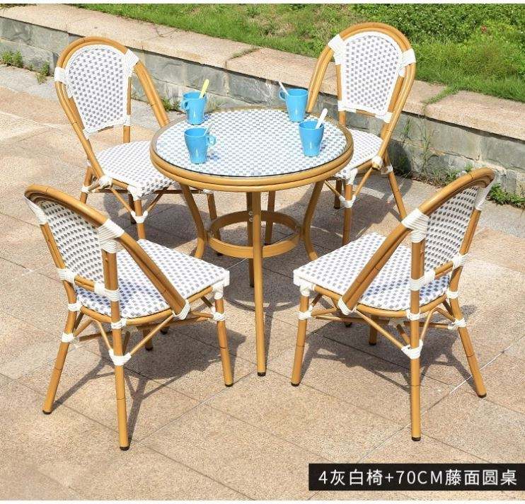 Salon de thé au lait Table et chaise d'extérieur en rotin Balcon de jardin Chaise de loisirs Terrasse Chaise en bambou Combinaison de chaises en rotin