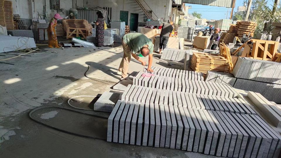 Pierre de granit de couleur grise naturelle pour jardin, pavés flammés et pavés et carreaux de sol antidérapants et épais