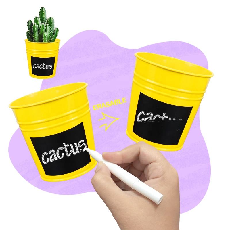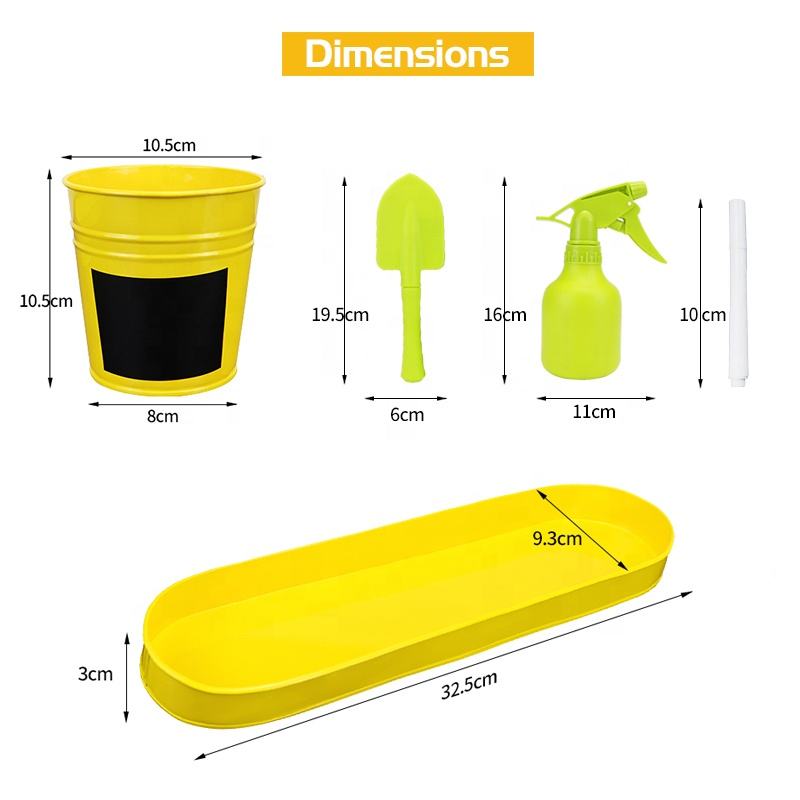 Inclure1:3 pots en fer blanc avec soucoupe, pelle, fibre de coco, marqueur